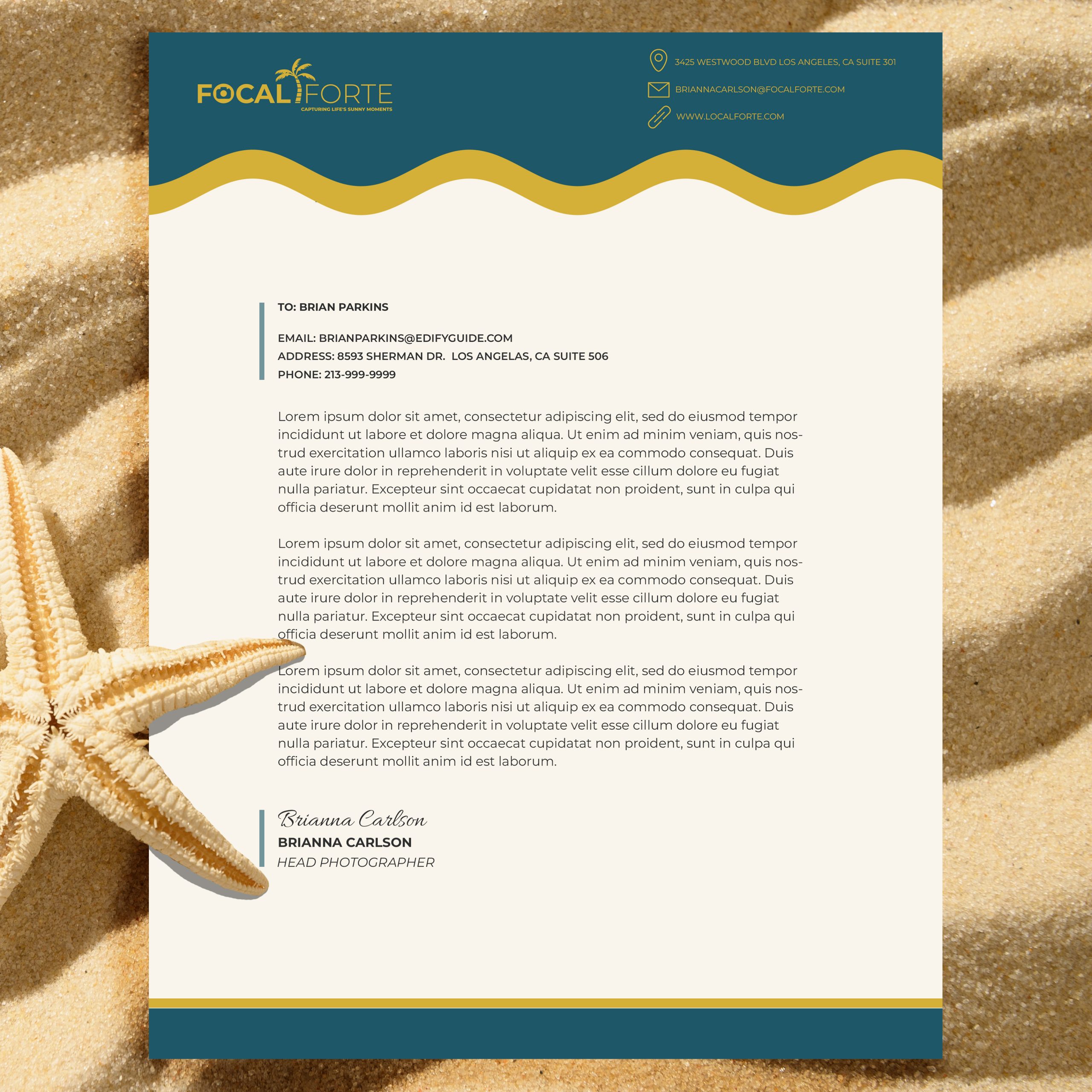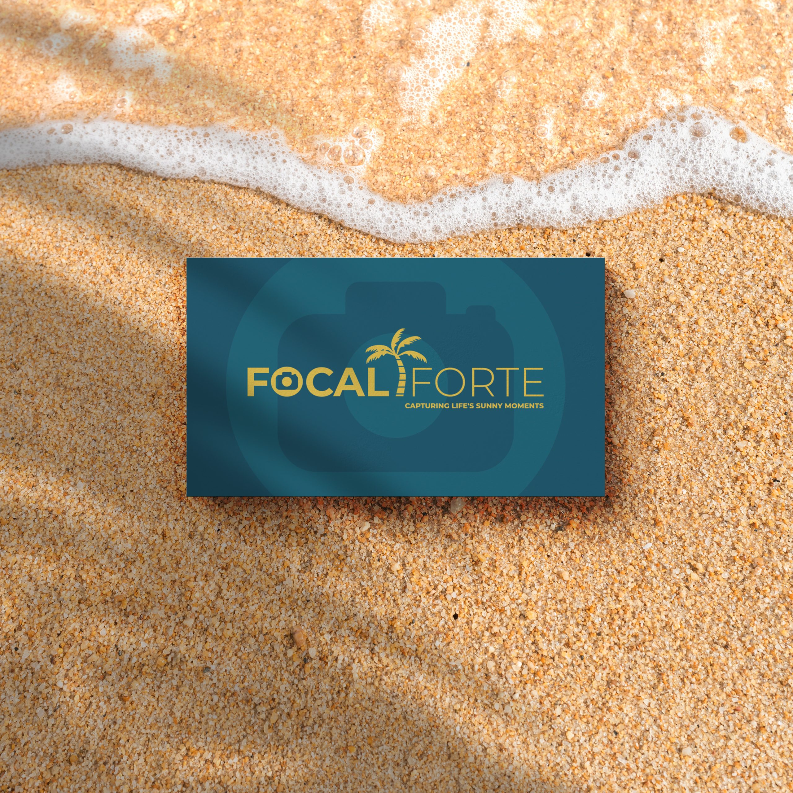 Focal Forte is a fictitious photography business based in sunny California. I wanted to add elements that reflected their location and the work they do. To accomplish this, I incorporated a palm tree and camera into the logo, and added touches of this imagery throughout their various brand items to create a unified theme.