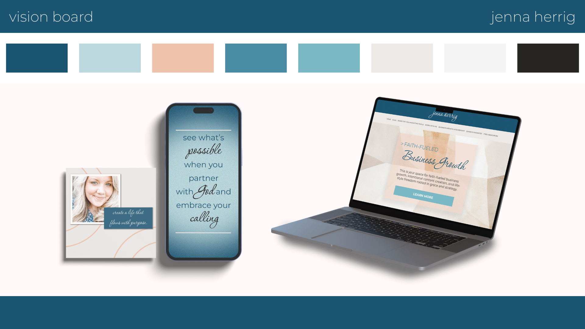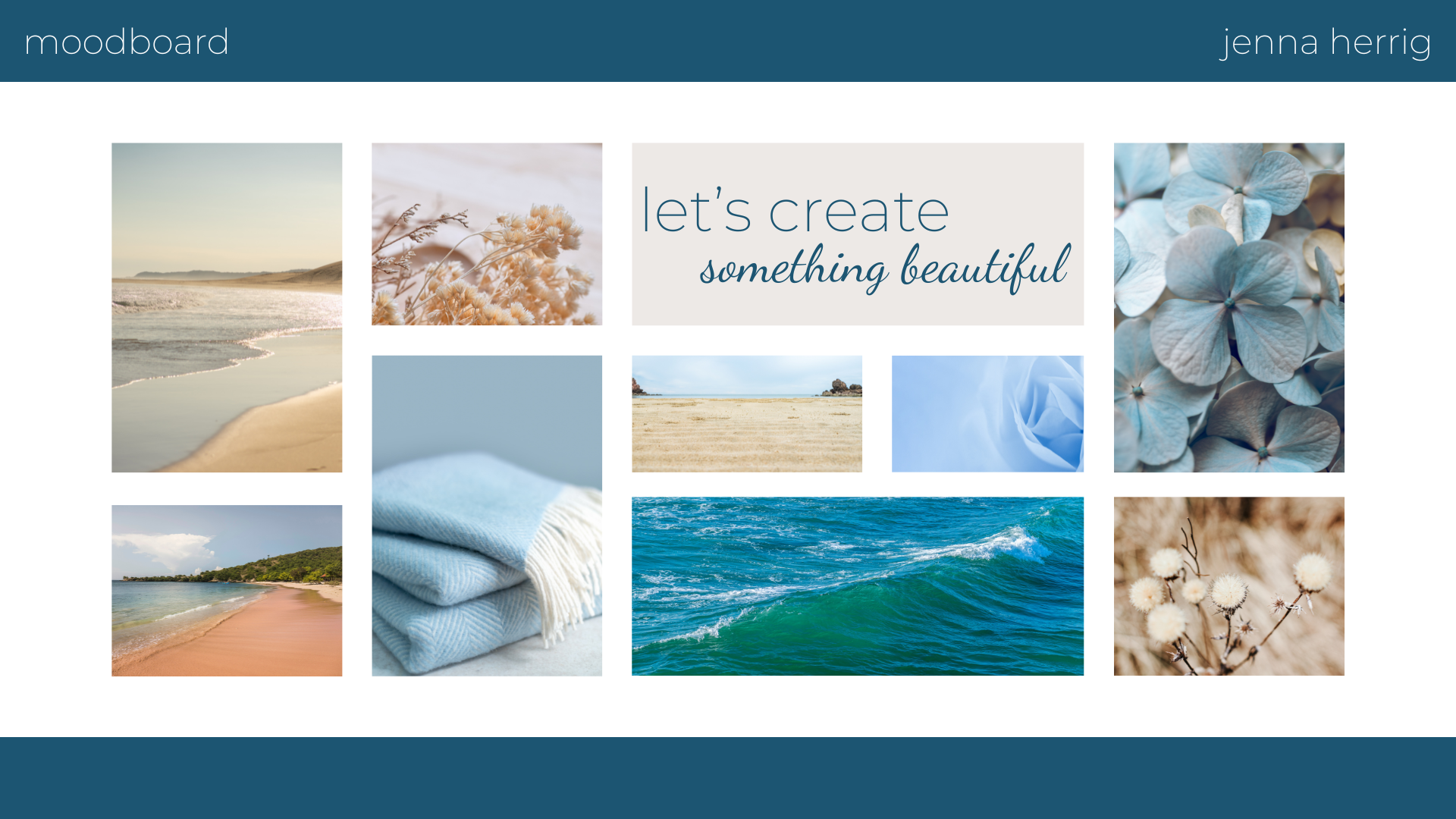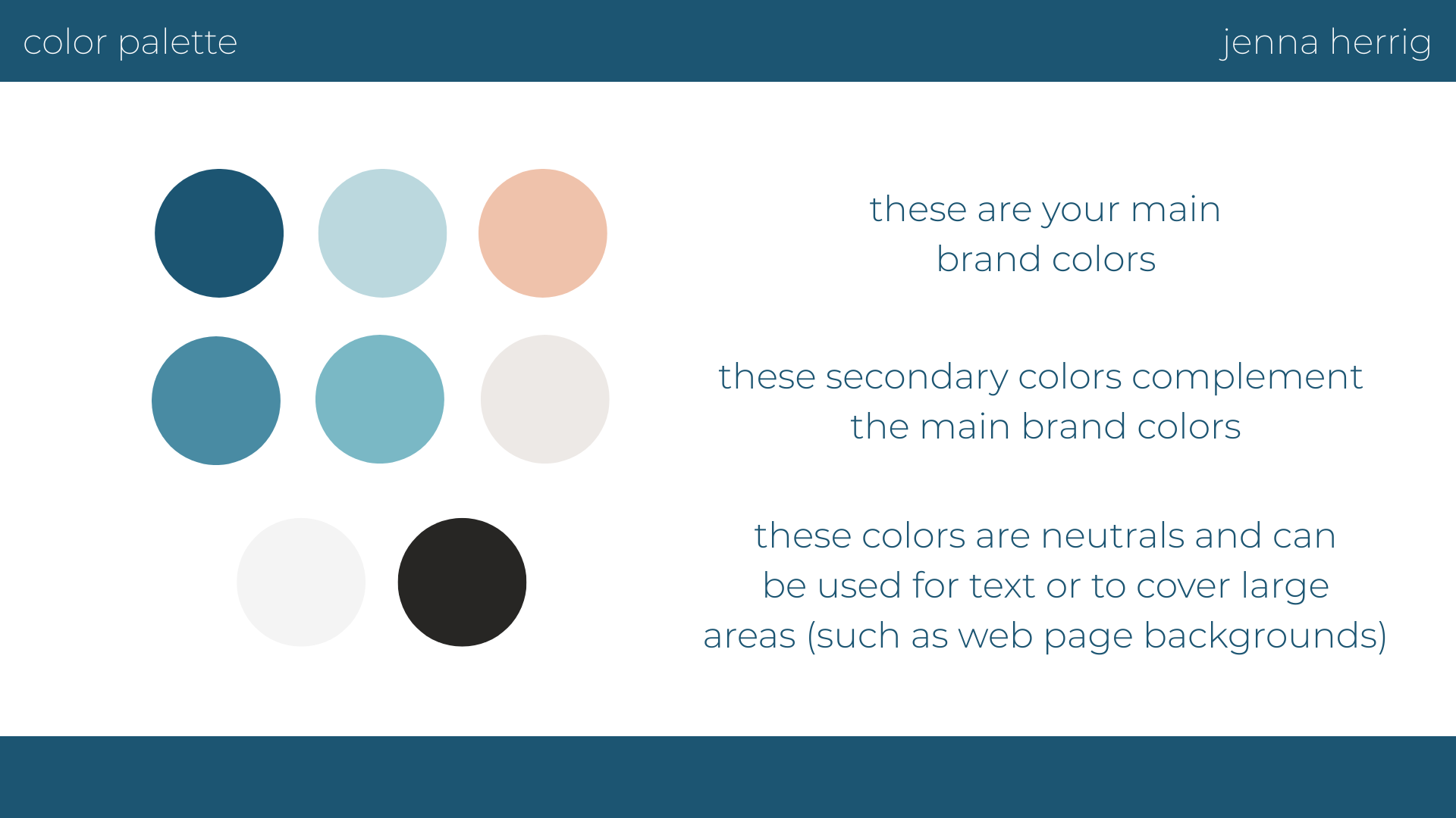 It was such a pleasure creating this color palette and logo for Jenna’s brand. She loved the color blue and wanted a palette that created a sense of peace and calm. Once the colors were in place, it was fun to see it all come together by creating a new logo.
